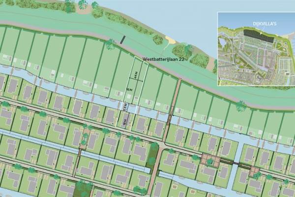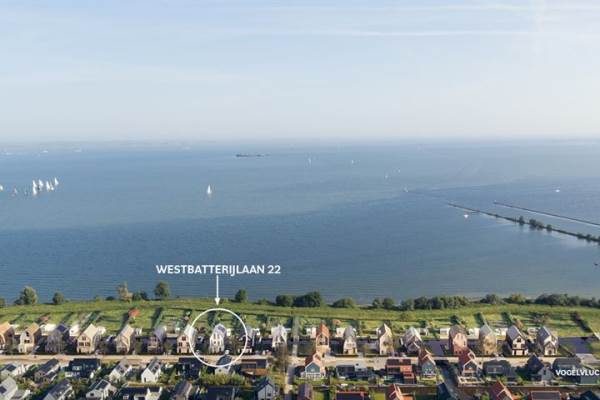 Het adres van deze woning uit 2024 is Westbatterijlaan 22 te Muiden. Het pand heeft een oppervlakte van 246m² en een perceeloppervlakte van 1098m² en heeft 11 kamers kamers waarvan 6 slaapkamers. De geschatte waarde van deze woning is € 2.480.000.