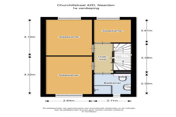 Het adres van deze woning uit 2015 is Churchillstraat 42D te Naarden. Het pand heeft een oppervlakte van 106m² en een perceeloppervlakte van 116m² en heeft 5 kamers kamers waarvan 4 slaapkamers. De geschatte waarde van deze woning is € 297.500.