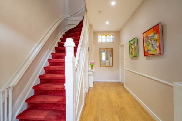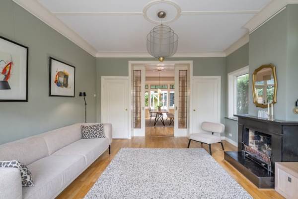 Het adres van deze woning uit 1923 is Nieuwe 's-Gravelandseweg 5B te Bussum. Het pand heeft een oppervlakte van 226m² en een perceeloppervlakte van 246m² en heeft 8 kamers kamers waarvan 7 slaapkamers. De geschatte waarde van deze woning is € 1.195.000.
