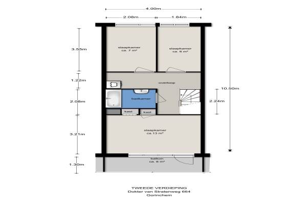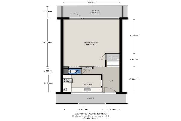 Het adres van deze woning uit 1976 is Dokter van Stratenweg 459 te Gorinchem. Het pand heeft een oppervlakte van 82m² en heeft 4 kamers kamers waarvan 3 slaapkamers. De geschatte waarde van deze woning is € 145.000.