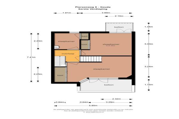 Het adres van deze woning uit 1927 is Piersonweg 6 te Gouda. Het pand heeft een oppervlakte van 120m² en een perceeloppervlakte van 140m² en heeft 6 kamers kamers waarvan 5 slaapkamers. De geschatte waarde van deze woning is € 295.000.