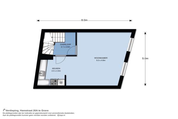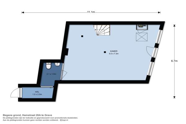 Het adres van deze woning uit 1632 is Hamstraat 26 te Grave. Het pand heeft een oppervlakte van 141m² en een perceeloppervlakte van 44m² en heeft 7 kamers kamers waarvan 2 slaapkamers. De geschatte waarde van deze woning is € 285.000.