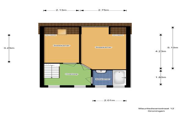 Het adres van deze woning uit 1875 is Mauritsdwarsstraat 12 te Groningen. Het pand heeft een oppervlakte van 76m² en een perceeloppervlakte van 39m² en heeft 4 kamers kamers waarvan 2 slaapkamers. De geschatte waarde van deze woning is € 187.500.