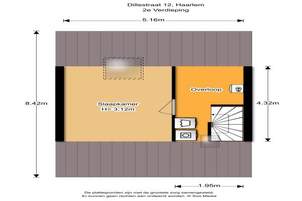 Het adres van deze woning uit 1990 is Dillestraat 12 te Haarlem. Het pand heeft een oppervlakte van 135m² en een perceeloppervlakte van 158m² en heeft 5 kamers kamers waarvan 3 slaapkamers. De geschatte waarde van deze woning is € 400.000.