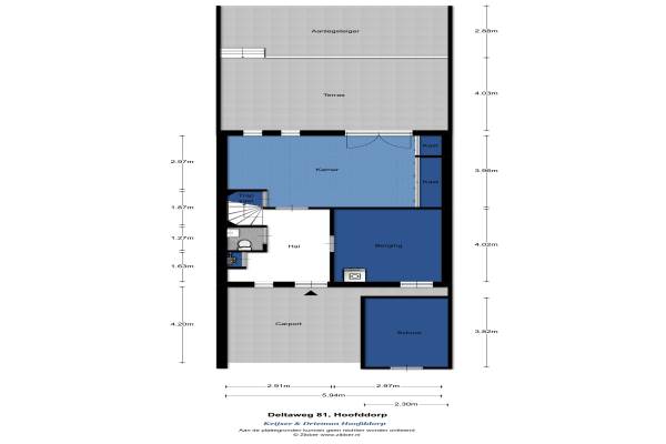 Het adres van deze woning uit 2004 is Deltaweg 81 te Hoofddorp. Het pand heeft een oppervlakte van 145m² en een perceeloppervlakte van 125m² en heeft 5 kamers kamers waarvan 4 slaapkamers. De geschatte waarde van deze woning is € 385.000.