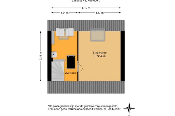 Het adres van deze woning uit 1988 is Zandbos 45 te Hoofddorp. Het pand heeft een oppervlakte van 104m² en een perceeloppervlakte van 175m² en heeft 5 kamers kamers waarvan 4 slaapkamers. De geschatte waarde van deze woning is € 435.000.
