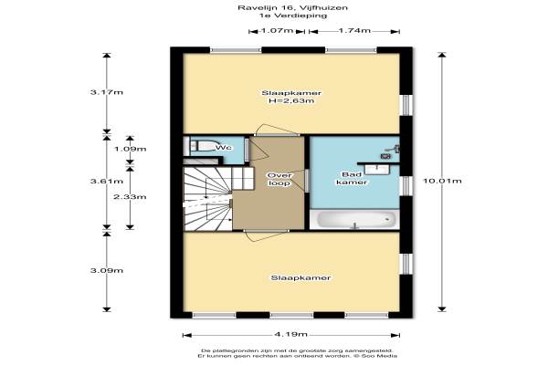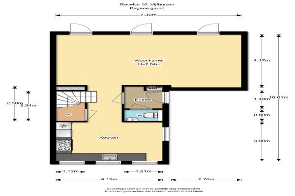 Het adres van deze woning uit 2008 is Ravelijn 16 te Vijfhuizen. Het pand heeft een oppervlakte van 137m² en een perceeloppervlakte van 263m² en heeft 5 kamers kamers waarvan 4 slaapkamers. De geschatte waarde van deze woning is € 489.000.