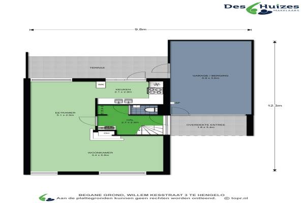 Het adres van deze woning uit 1980 is Willem Kesstraat 3 te Hengelo. Het pand heeft een oppervlakte van 129m² en een perceeloppervlakte van 250m² en heeft 5 kamers kamers waarvan 4 slaapkamers. De geschatte waarde van deze woning is € 269.500.