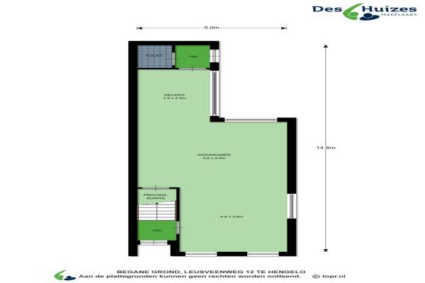 Het adres van deze woning uit 1903 is Leusveenweg 12 te Hengelo. Het pand heeft een oppervlakte van 98m² en een perceeloppervlakte van 200m² en heeft 3 kamers kamers waarvan 2 slaapkamers. De geschatte waarde van deze woning is € 150.000.