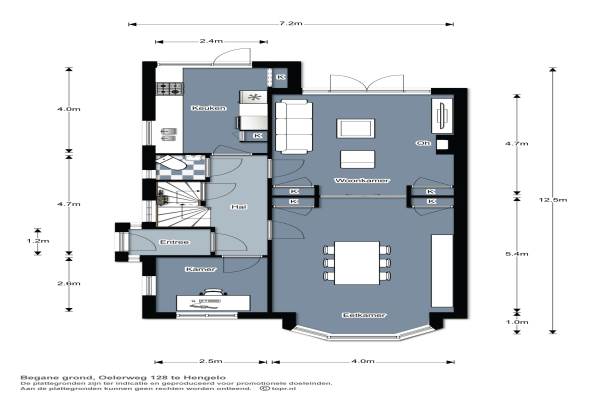 Het adres van deze woning uit 1927 is Oelerweg 128 te Hengelo. Het pand heeft een oppervlakte van 186m² en een perceeloppervlakte van 670m² en heeft 7 kamers kamers waarvan 5 slaapkamers. De geschatte waarde van deze woning is € 289.000.
