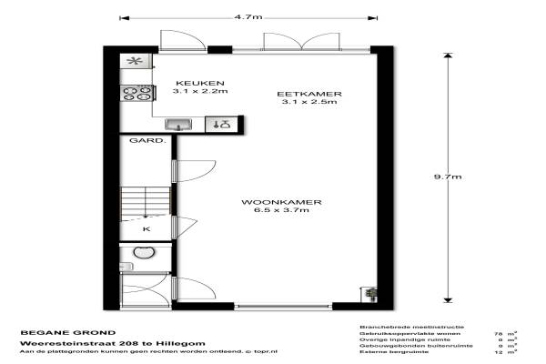 Het adres van deze woning uit 1920 is Weeresteinstraat 208 te Hillegom. Het pand heeft een oppervlakte van 78m² en een perceeloppervlakte van 127m² en heeft 3 kamers kamers waarvan 2 slaapkamers. De geschatte waarde van deze woning is € 219.000.