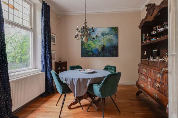 Het adres van deze woning uit 1900 is Roeltjesweg 25 te Hilversum. Het pand heeft een oppervlakte van 256m² en een perceeloppervlakte van 655m² en heeft 8 kamers kamers waarvan 5 slaapkamers. De geschatte waarde van deze woning is € 1.250.000.