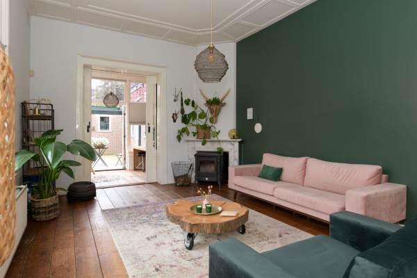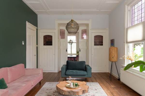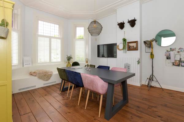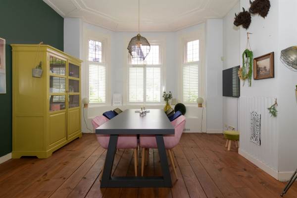 Het adres van deze woning uit 1890 is Larenseweg 38F te Hilversum. Het pand heeft een oppervlakte van 215m² en een perceeloppervlakte van 306m² en heeft 8 kamers kamers waarvan 5 slaapkamers. De geschatte waarde van deze woning is € 945.000.