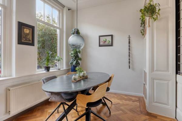 Het adres van deze woning uit 1905 is Dahliastraat 12 te Hilversum. Het pand heeft een oppervlakte van 77m² en een perceeloppervlakte van 130m² en heeft 3 kamers kamers waarvan 2 slaapkamers. De geschatte waarde van deze woning is € 449.000.