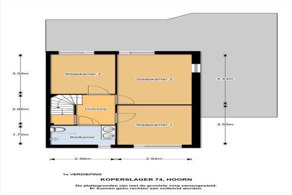 Het adres van deze woning uit 1974 is Koperslager 74 te Hoorn Nh. Het pand heeft een oppervlakte van 135m² en een perceeloppervlakte van 238m² en heeft 6 kamers kamers waarvan 5 slaapkamers. De geschatte waarde van deze woning is € 330.000.