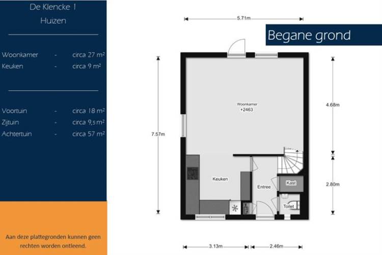 Het adres van deze woning uit 1982 is De Klencke 1 te Huizen. Het pand heeft een oppervlakte van 91m² en een perceeloppervlakte van 129m² en heeft 4 kamers kamers waarvan 3 slaapkamers. De geschatte waarde van deze woning is € 275.000.