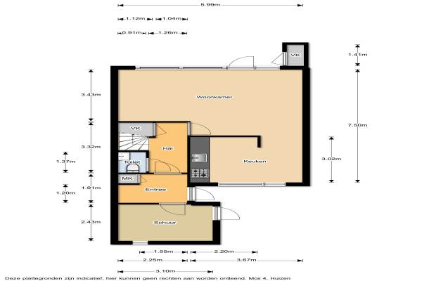 Het adres van deze woning uit 1977 is Mos 4 te Huizen. Het pand heeft een oppervlakte van 117m² en een perceeloppervlakte van 186m² en heeft 5 kamers kamers waarvan 4 slaapkamers. De geschatte waarde van deze woning is € 239.500.