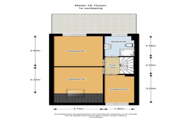 Het adres van deze woning uit 1984 is Marter 18 te Huizen. Het pand heeft een oppervlakte van 105m² en een perceeloppervlakte van 204m² en heeft 6 kamers kamers waarvan 4 slaapkamers. De geschatte waarde van deze woning is € 265.000.