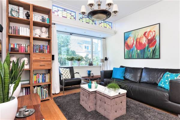 Het adres van deze woning uit 1937 is Koningin Julianastraat 63 te Huizen. Het pand heeft een oppervlakte van 150m² en een perceeloppervlakte van 375m² en heeft 8 kamers kamers waarvan 5 slaapkamers. De geschatte waarde van deze woning is € 650.000.
