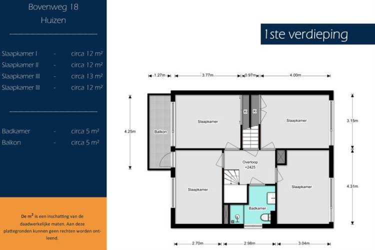 Het adres van deze woning uit 1973 is Bovenweg 18 te Huizen. Het pand heeft een oppervlakte van 174m² en een perceeloppervlakte van 365m² en heeft 7 kamers kamers waarvan 5 slaapkamers. De geschatte waarde van deze woning is € 550.000.
