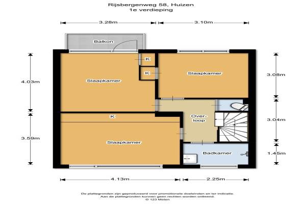 Het adres van deze woning uit 1962 is Rijsbergenweg 58 te Huizen. Het pand heeft een oppervlakte van 124m² en een perceeloppervlakte van 203m² en heeft 5 kamers kamers waarvan 4 slaapkamers. De geschatte waarde van deze woning is € 289.000.