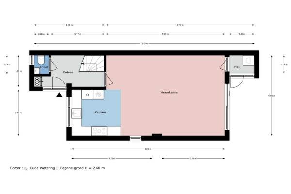 Het adres van deze woning uit 1980 is Botter 11 te Oude Wetering. Het pand heeft een oppervlakte van 123m² en een perceeloppervlakte van 146m² en heeft 5 kamers kamers waarvan 4 slaapkamers. De geschatte waarde van deze woning is € 415.000.