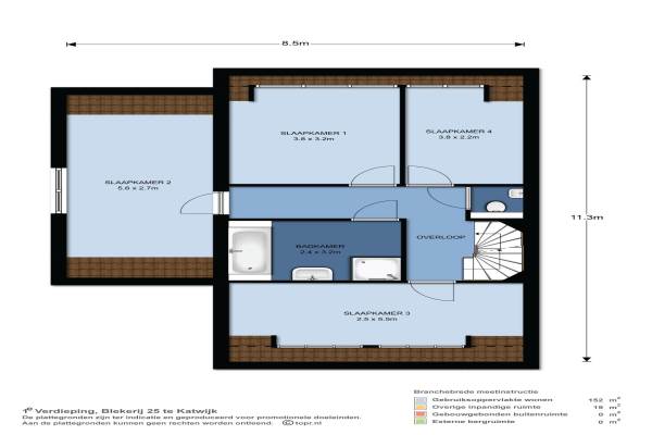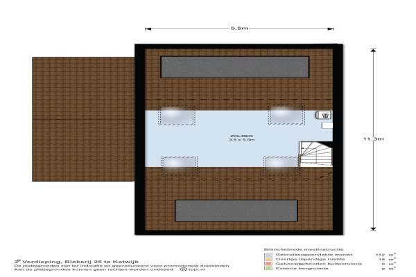 Het adres van deze woning uit 2004 is Blekerij 25 te Katwijk. Het pand heeft een oppervlakte van 152m² en een perceeloppervlakte van 294m² en heeft 6 kamers kamers waarvan 5 slaapkamers. De geschatte waarde van deze woning is € 639.000.