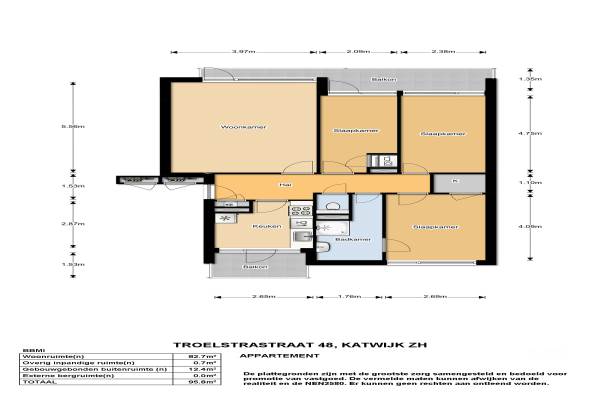 Het adres van deze woning uit 1971 is Troelstrastraat 48 te Katwijk. Het pand heeft een oppervlakte van 85m² en heeft 4 kamers kamers waarvan 3 slaapkamers. De geschatte waarde van deze woning is € 207.500.