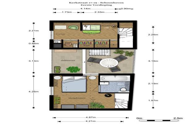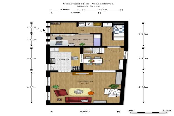 Het adres van deze woning uit 1850 is Kerkstraat 17-19 te Schoonhoven. Het pand heeft een oppervlakte van 86m² en een perceeloppervlakte van 65m² en heeft 5 kamers kamers waarvan 3 slaapkamers. De geschatte waarde van deze woning is € 225.000.