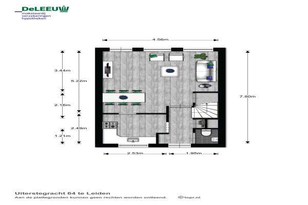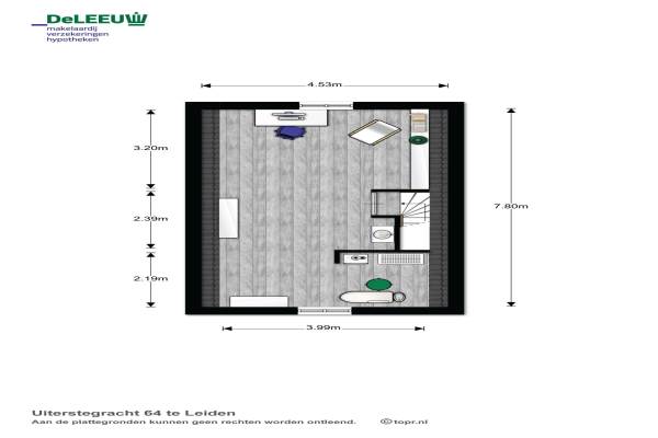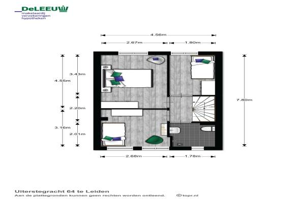Het adres van deze woning uit 1983 is Uiterstegracht 64 te Leiden. Het pand heeft een oppervlakte van 102m² en een perceeloppervlakte van 86m² en heeft 5 kamers kamers waarvan 4 slaapkamers. De geschatte waarde van deze woning is € 435.000.
