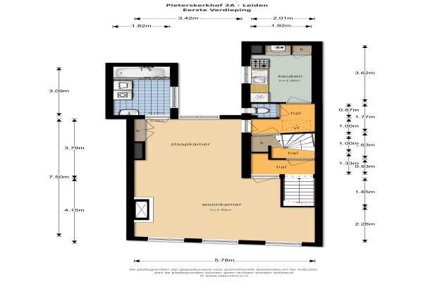 Het adres van deze woning uit 1650 is Pieterskerkhof 2A te Leiden. Het pand heeft een oppervlakte van 95m² en heeft 4 kamers kamers waarvan 2 slaapkamers. De geschatte waarde van deze woning is € 375.000.