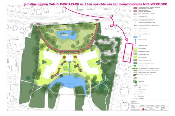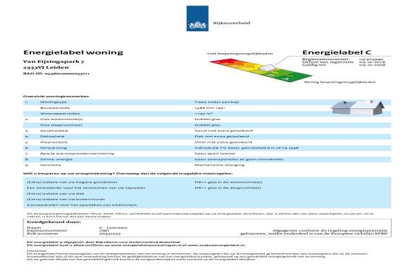 Het adres van deze woning uit 1991 is Van Eijsingapark 7 te Leiden. Het pand heeft 8 kamers kamers waarvan 5 slaapkamers. De geschatte waarde van deze woning is € 1.098.000.