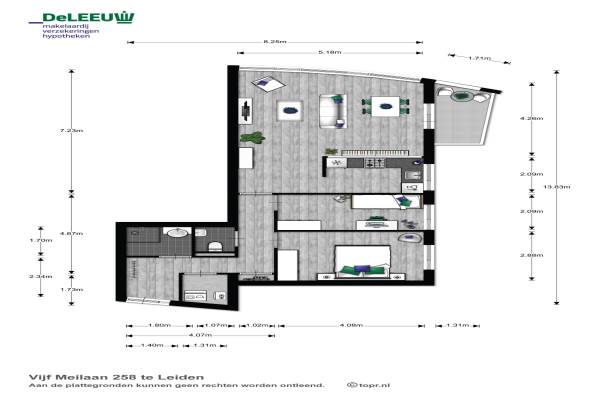Het adres van deze woning uit 1996 is Vijf Meilaan 258 te Leiden. Het pand heeft een oppervlakte van 77m² en heeft 3 kamers kamers waarvan 2 slaapkamers. De geschatte waarde van deze woning is € 225.000.