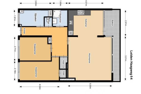 Het adres van deze woning uit 1962 is Haagweg 64 te Leiden. Het pand heeft een oppervlakte van 81m² en heeft 3 kamers kamers waarvan 2 slaapkamers. De geschatte waarde van deze woning is € 195.000.