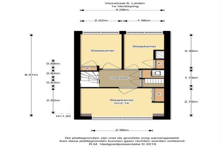 Het adres van deze woning uit 1925 is Voorstraat 6 te Leiden. Het pand heeft een oppervlakte van 74m² en een perceeloppervlakte van 106m² en heeft 4 kamers kamers waarvan 3 slaapkamers. De geschatte waarde van deze woning is € 275.000.