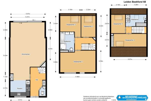 Het adres van deze woning uit 1987 is Beekforel 68 te Leiden. Het pand heeft een oppervlakte van 137m² en een perceeloppervlakte van 179m² en heeft 6 kamers kamers waarvan 5 slaapkamers. De geschatte waarde van deze woning is € 415.000.
