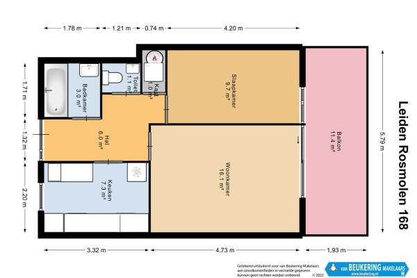 Het adres van deze woning uit 1978 is Rosmolen 168 te Leiden. Het pand heeft een oppervlakte van 46m² en heeft 2 kamers kamers waarvan 1 slaapkamers. De geschatte waarde van deze woning is € 235.000.
