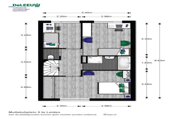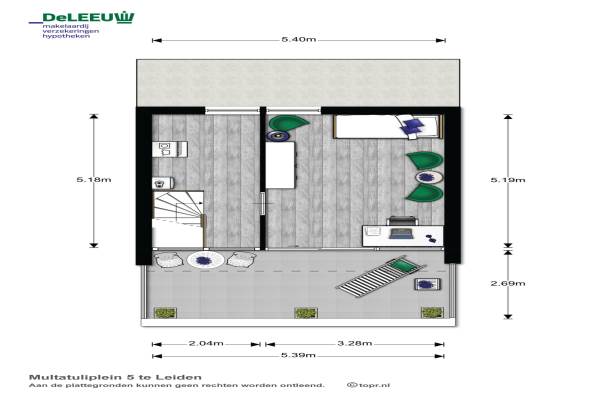 Het adres van deze woning uit 2002 is Multatuliplein 5 te Leiden. Het pand heeft een oppervlakte van 134m² en een perceeloppervlakte van 111m² en heeft 6 kamers kamers waarvan 4 slaapkamers. De geschatte waarde van deze woning is € 339.000.