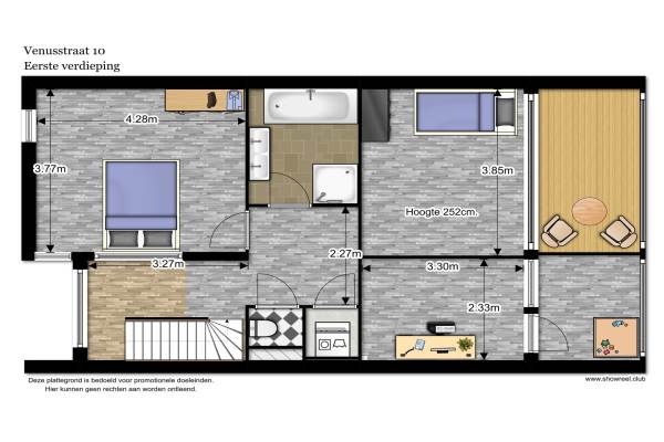 Het adres van deze woning uit 2005 is Venusstraat 10 te Leiden. Het pand heeft een oppervlakte van 155m² en een perceeloppervlakte van 158m² en heeft 5 kamers kamers waarvan 3 slaapkamers. De geschatte waarde van deze woning is € 525.000.