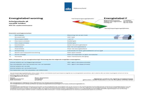 Het adres van deze woning uit 1900 is Schelpenkade 38 te Leiden. Het pand heeft een oppervlakte van 203m² en een perceeloppervlakte van 175m² en heeft 8 kamers kamers waarvan 6 slaapkamers. De geschatte waarde van deze woning is € 815.000.
