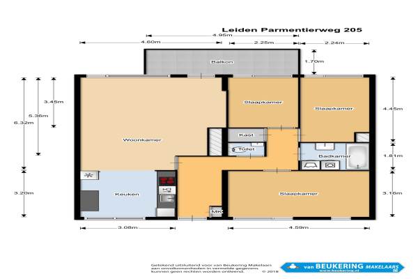 Het adres van deze woning uit 1993 is Parmentierweg 205 te Leiden. Het pand heeft een oppervlakte van 90m² en heeft 4 kamers kamers waarvan 3 slaapkamers. De geschatte waarde van deze woning is € 325.000.
