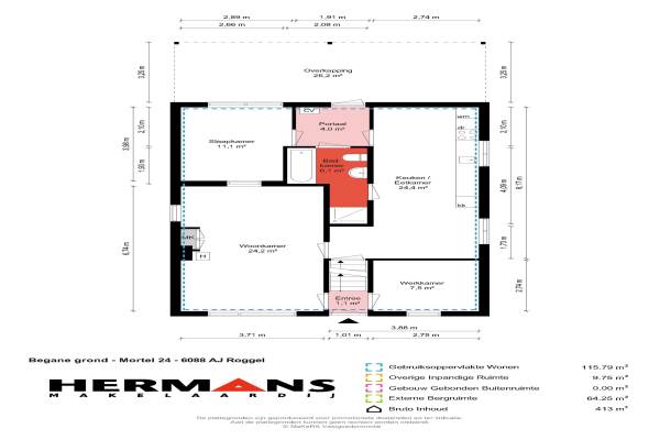 Het adres van deze woning uit 1955 is Mortel 24 te Roggel. Het pand heeft een oppervlakte van 116m² en een perceeloppervlakte van 575m² en heeft 6 kamers kamers waarvan 2 slaapkamers. De geschatte waarde van deze woning is € 249.000.