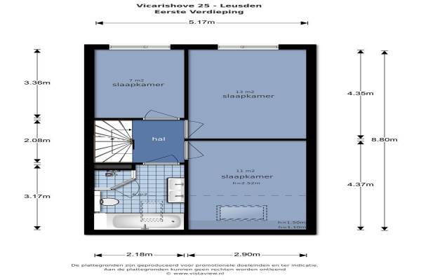 Het adres van deze woning uit 1983 is Vicarishove 25 te Leusden. Het pand heeft een oppervlakte van 113m² en een perceeloppervlakte van 121m² en heeft 6 kamers kamers waarvan 5 slaapkamers. De geschatte waarde van deze woning is € 275.000.