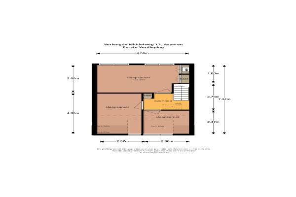 Het adres van deze woning is Verlengde Middelweg 13 te Asperen. Het pand heeft een oppervlakte van 85m² en een perceeloppervlakte van 144m² en heeft 5 kamers kamers waarvan 3 slaapkamers. De geschatte waarde van deze woning is € 228.000.