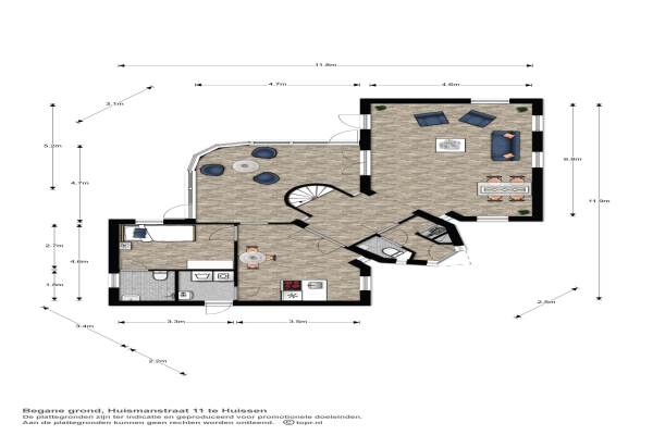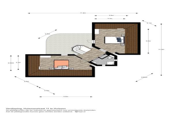 Het adres van deze woning uit 1988 is Huismanstraat 11 te Huissen. Het pand heeft een oppervlakte van 139m² en een perceeloppervlakte van 869m² en heeft 5 kamers kamers waarvan 3 slaapkamers. De geschatte waarde van deze woning is € 465.000.
