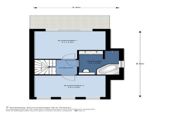 Het adres van deze woning uit 2010 is Keurvorstsingel 22 te Huissen. Het pand heeft een oppervlakte van 124m² en een perceeloppervlakte van 160m² en heeft 4 kamers kamers waarvan 3 slaapkamers. De geschatte waarde van deze woning is € 285.000.