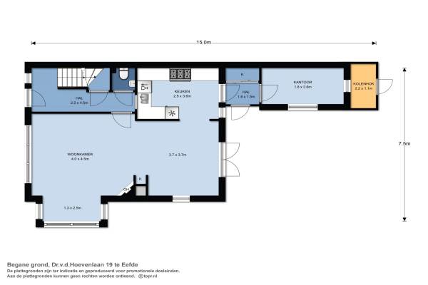 Het adres van deze woning uit 1938 is Dr.v.d.Hoevenlaan 19 te Eefde. Het pand heeft een oppervlakte van 150m² en een perceeloppervlakte van 394m² en heeft 4 kamers kamers waarvan 3 slaapkamers. De geschatte waarde van deze woning is € 330.000.