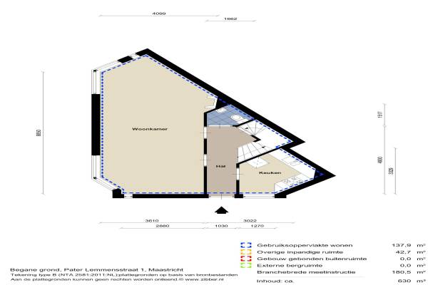 Het adres van deze woning uit 1938 is Pater Lemmensstraat 1 te Maastricht. Het pand heeft een oppervlakte van 138m² en een perceeloppervlakte van 123m² en heeft 5 kamers kamers waarvan 4 slaapkamers. De geschatte waarde van deze woning is € 448.000.