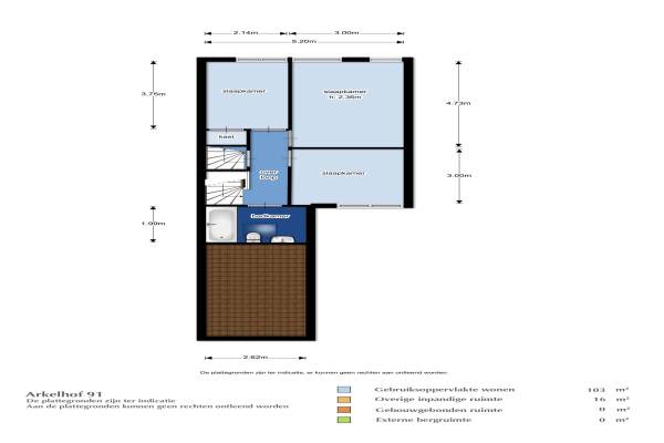 Het adres van deze woning uit 1974 is Arkelhof 91 te Zevenbergen. Het pand heeft een oppervlakte van 103m² en een perceeloppervlakte van 158m² en heeft 5 kamers kamers waarvan 4 slaapkamers. De geschatte waarde van deze woning is € 209.500.