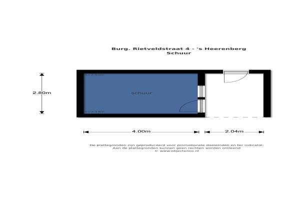 Het adres van deze woning uit 1965 is Burgemeester Rietveldstr 4 te 's-Heerenberg. Het pand heeft een oppervlakte van 125m² en een perceeloppervlakte van 149m² en heeft 5 kamers kamers waarvan 4 slaapkamers. De geschatte waarde van deze woning is € 125.000.